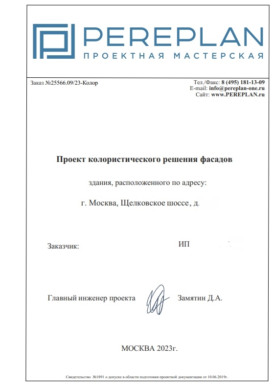 Услуга включает в себя выезд инженера, который проводит сверку поэтажных планов с фактической ситуацией; разработку проекта колористических решений и паспорта; сбор необходимых документов; согласование паспорта в Москомархитектуре до положительного результата – получения колористического паспорта.
