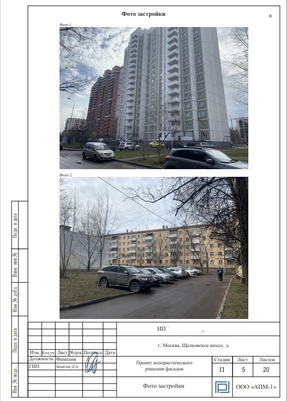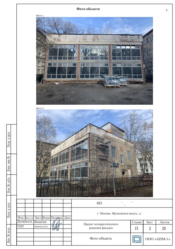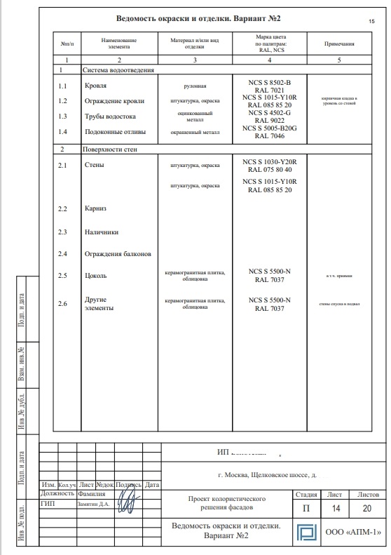Проектная документация состоит из пояснительной записки, фотофиксации актуального состояния здания, окружающей застройки, трех вариантов изменения фасада с ведомостями окраски и отделки, а также обоснования колористического решения.