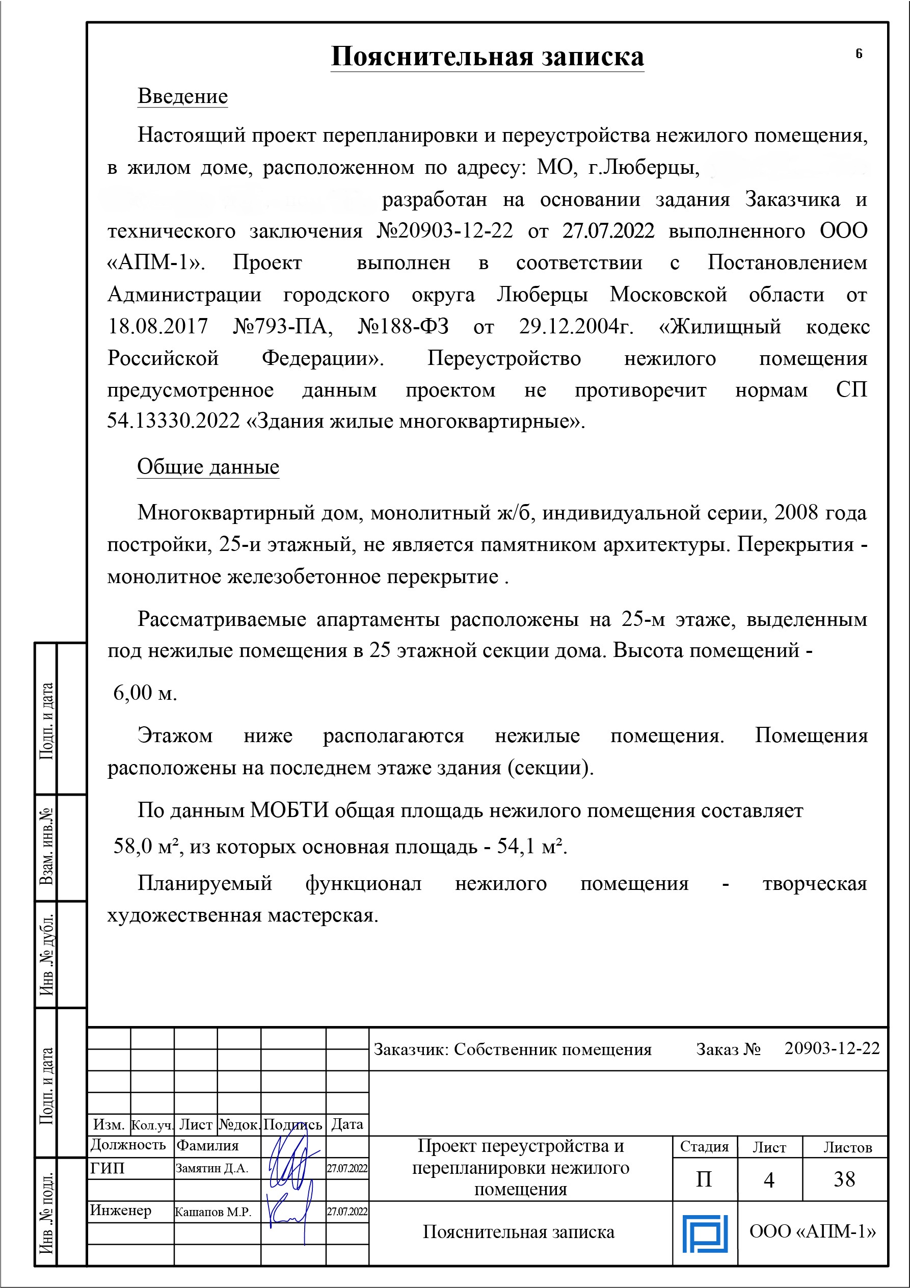 Пример проекта перепланировки для нежилого помещения в жилом доме города Люберцы. Согласовывали его под художественную мастерскую: