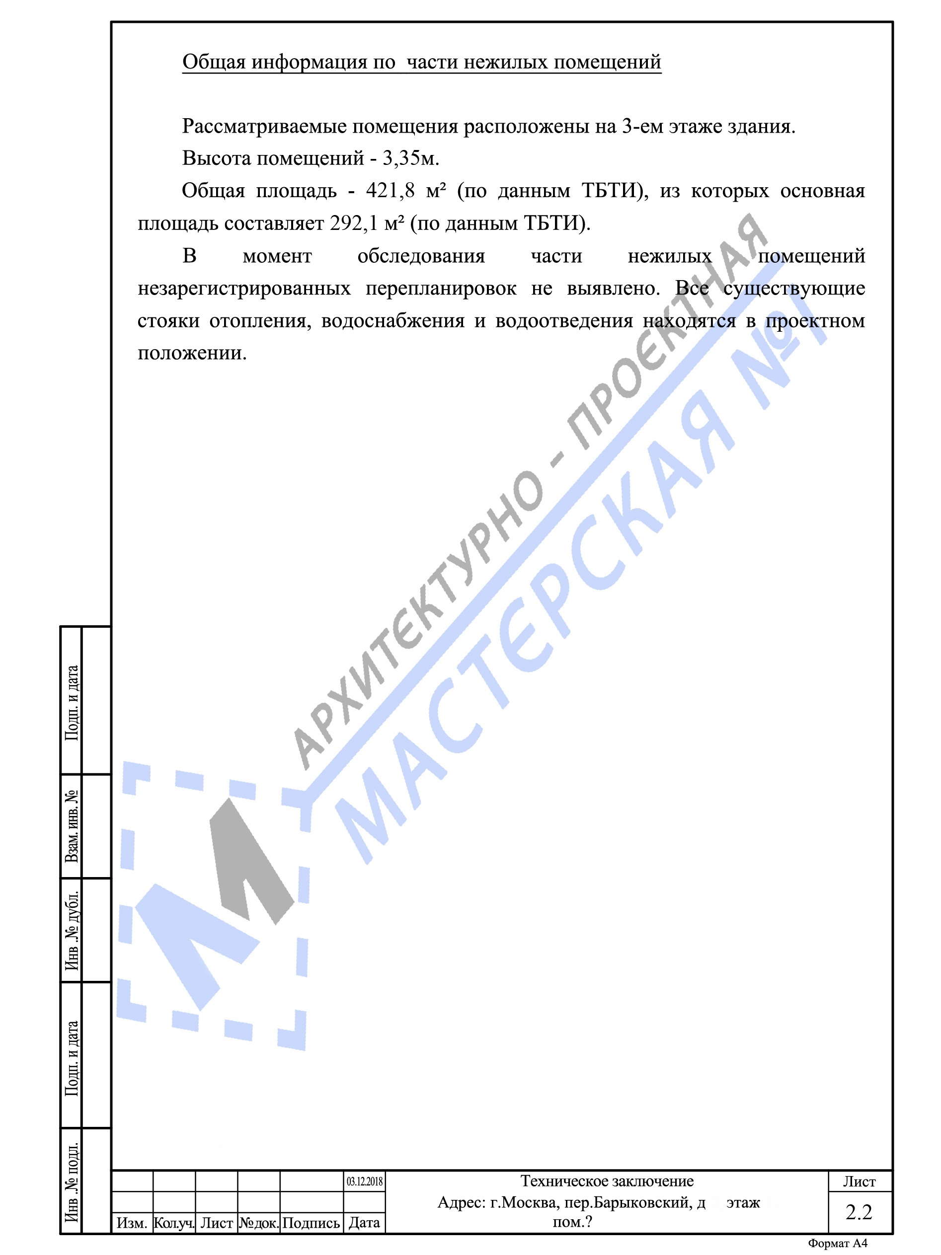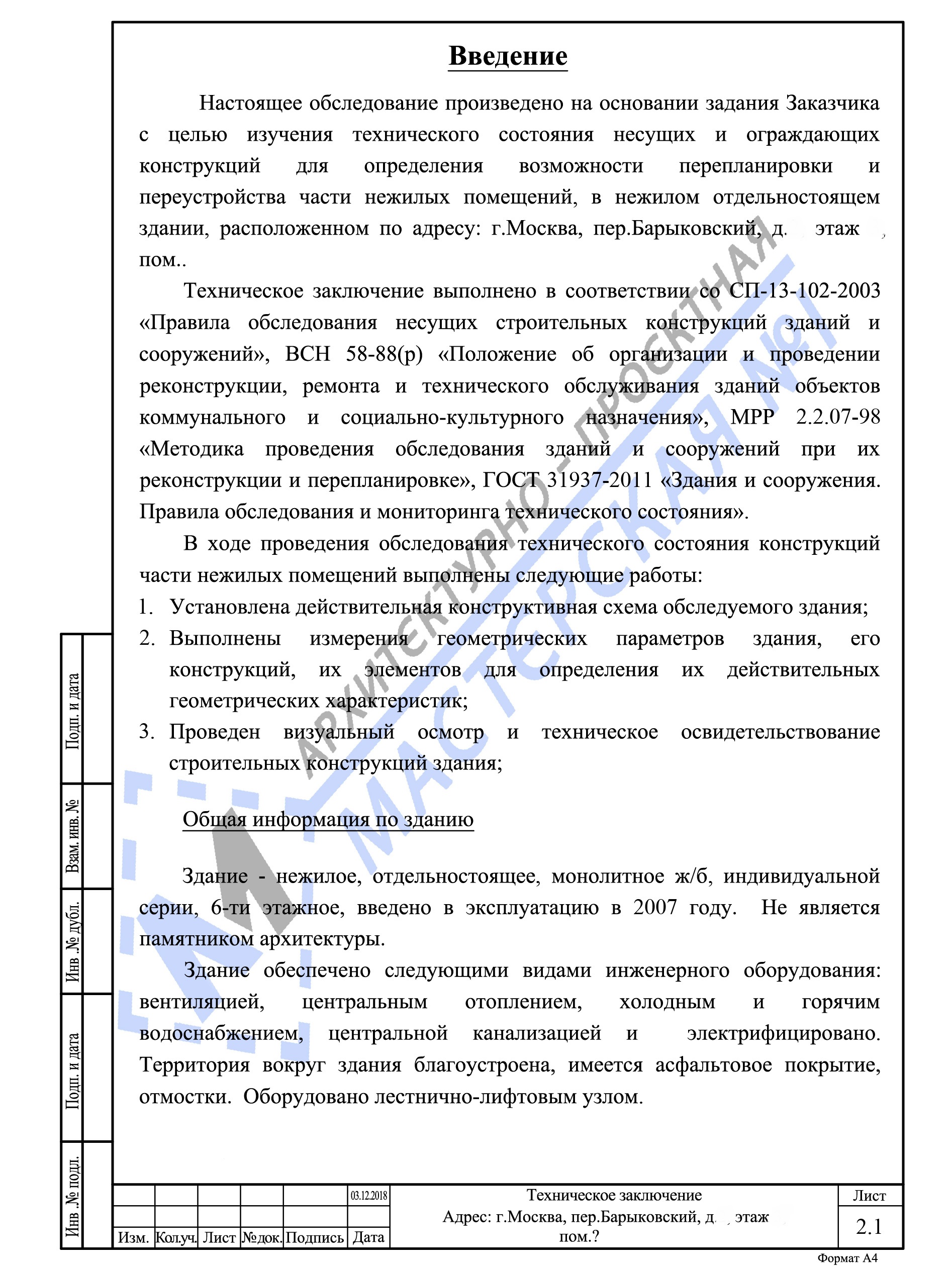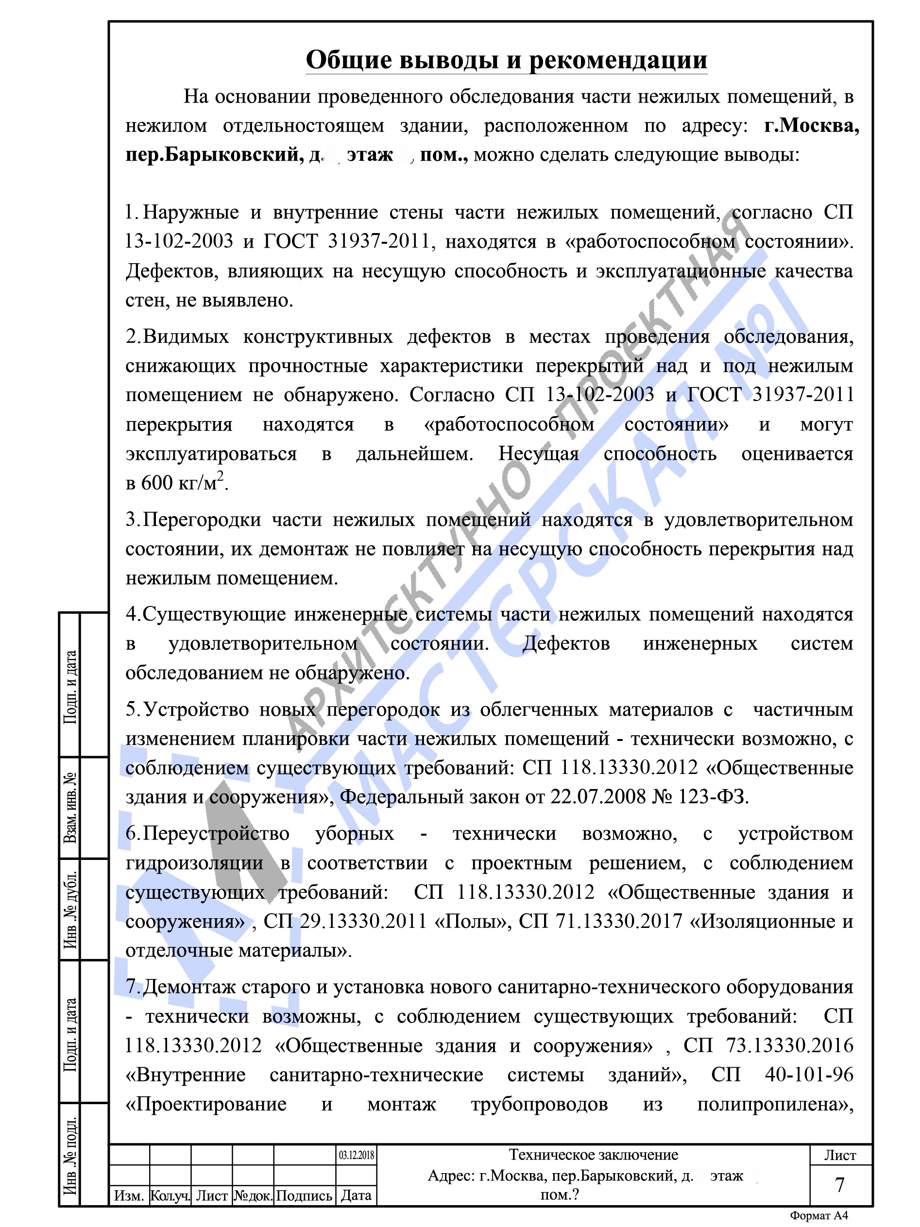 Техническое заключение на перепланировку нежилого помещения