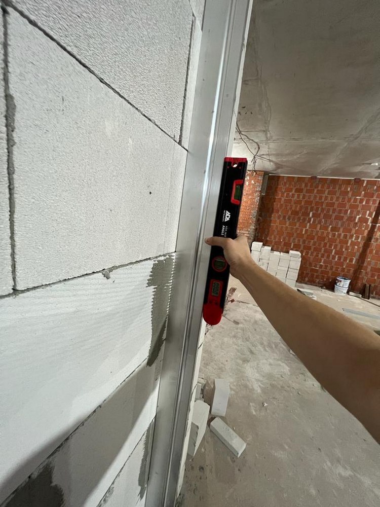 Возводите перегородки с минимальными отклонениями, чтобы потом не пришлось наносить толстые слои штукатурки для их выравнивания и выведения углов под 90 градусов.
