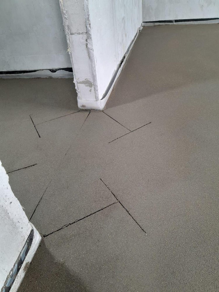 На фотографиях видно, что в стяжке сделаны деформационные швы.