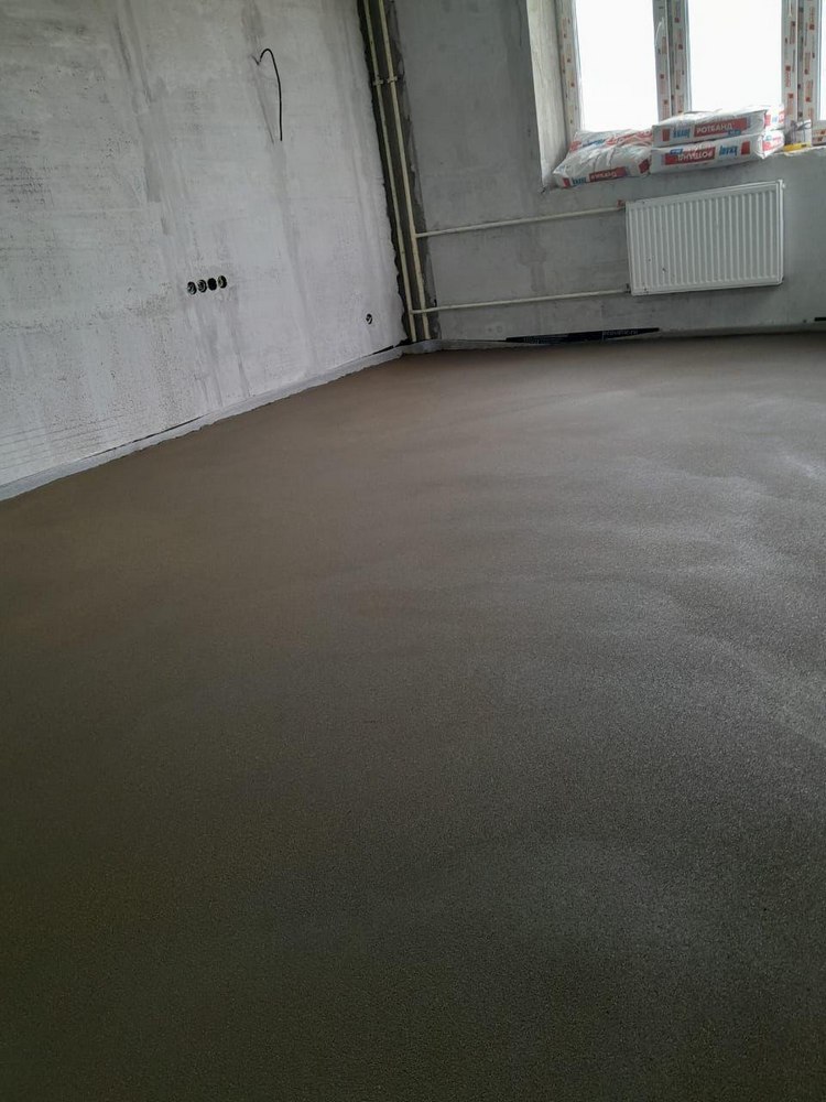 Рекомендуем заливать стяжку механизированным способом. Чтобы не было больших простоев, советуем сначала провести сантехнические работы, а потом залить стяжку. После устройства стяжки можно приступить к электромонтажным работам (актуально, когда разводка всей электрики выполняется по потолку). Обычно к их завершению стяжка высыхает.
