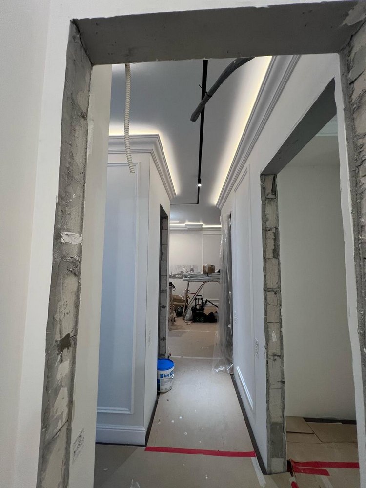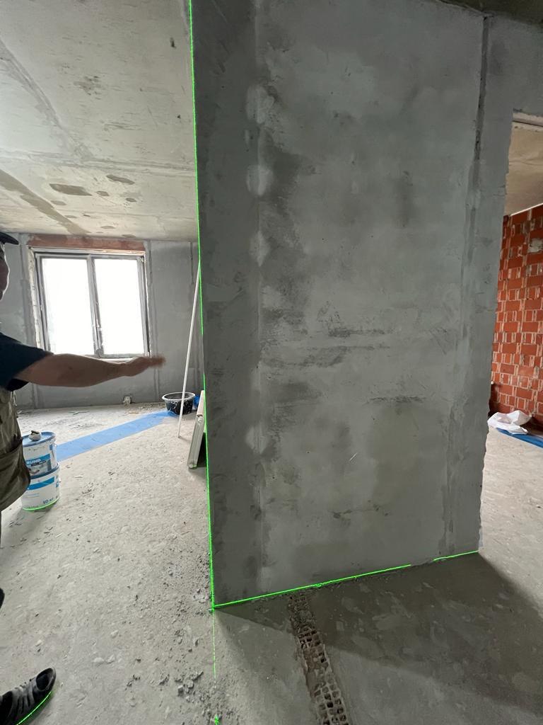 В квартире не обязательно выводить абсолютно каждый угол под 90 градусов — на это будет потрачено слишком много штукатурки, слой будет толще. Прежде всего стоит выровнять углы там, где планируется установить встроенную мебель и оборудование. Например, шкафы, кухонный гарнитур, ванну и т.д.