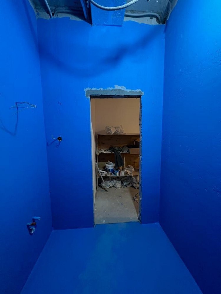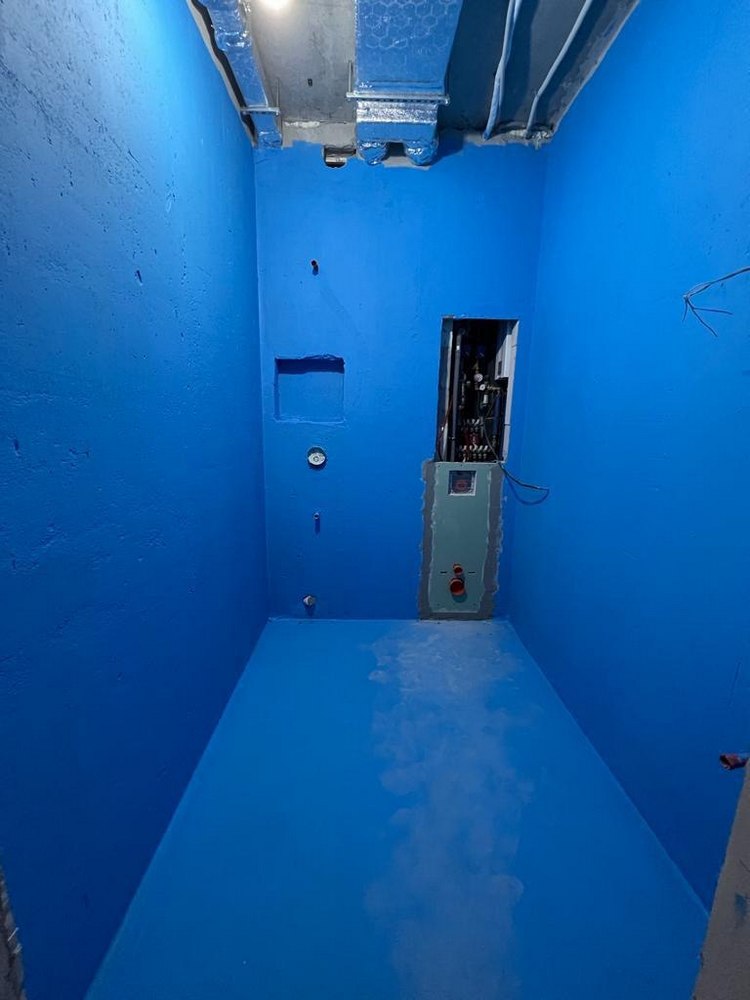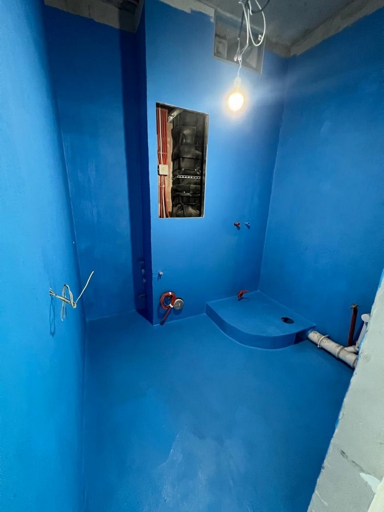 На фотографии обмазочная гидроизоляция, обычно она синего цвета.
