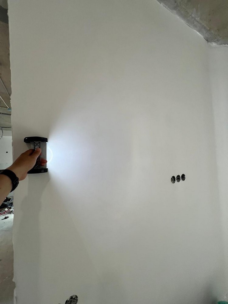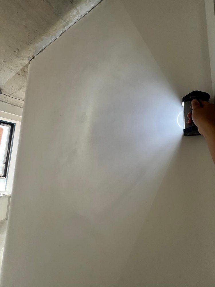 Для проверки качества малярных работ рекомендуем использовать лампу Лосева. Нужно заранее сказать строителям, что вы будете принимать работу с этой лампой — она покажет мельчайшие неровности на поверхностях:
