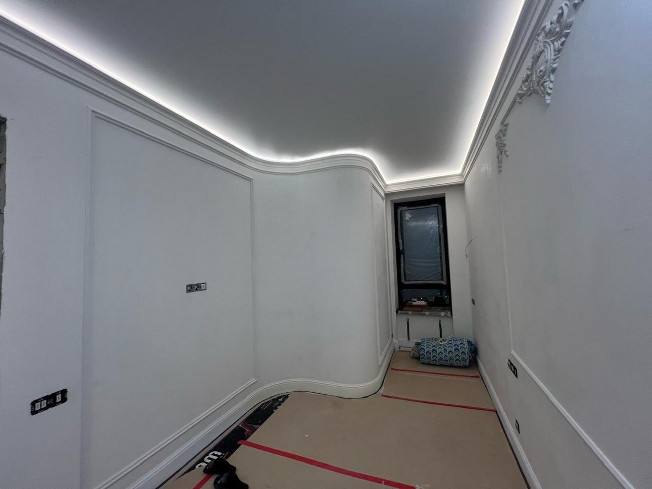 - Высококачественная штукатурка: отклонения допускаются до 0,5 мм на 1 м и до 5 мм на всю высоту помещения. Мы рекомендуем выбирать именно её, потому что с ней возможно вывести внутренние углы помещений ровно под 90 градусов — это позволит удобно расставить мебель и в целом сделать ремонт в точности по дизайн-проекту.
