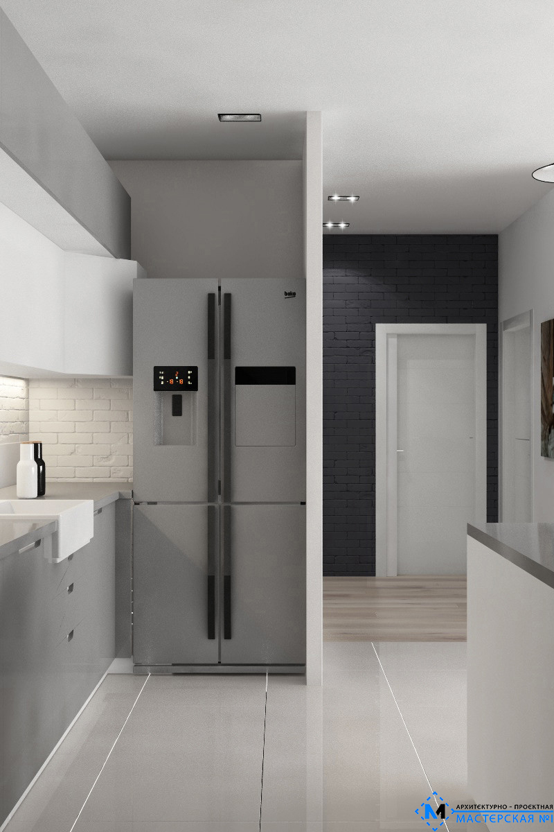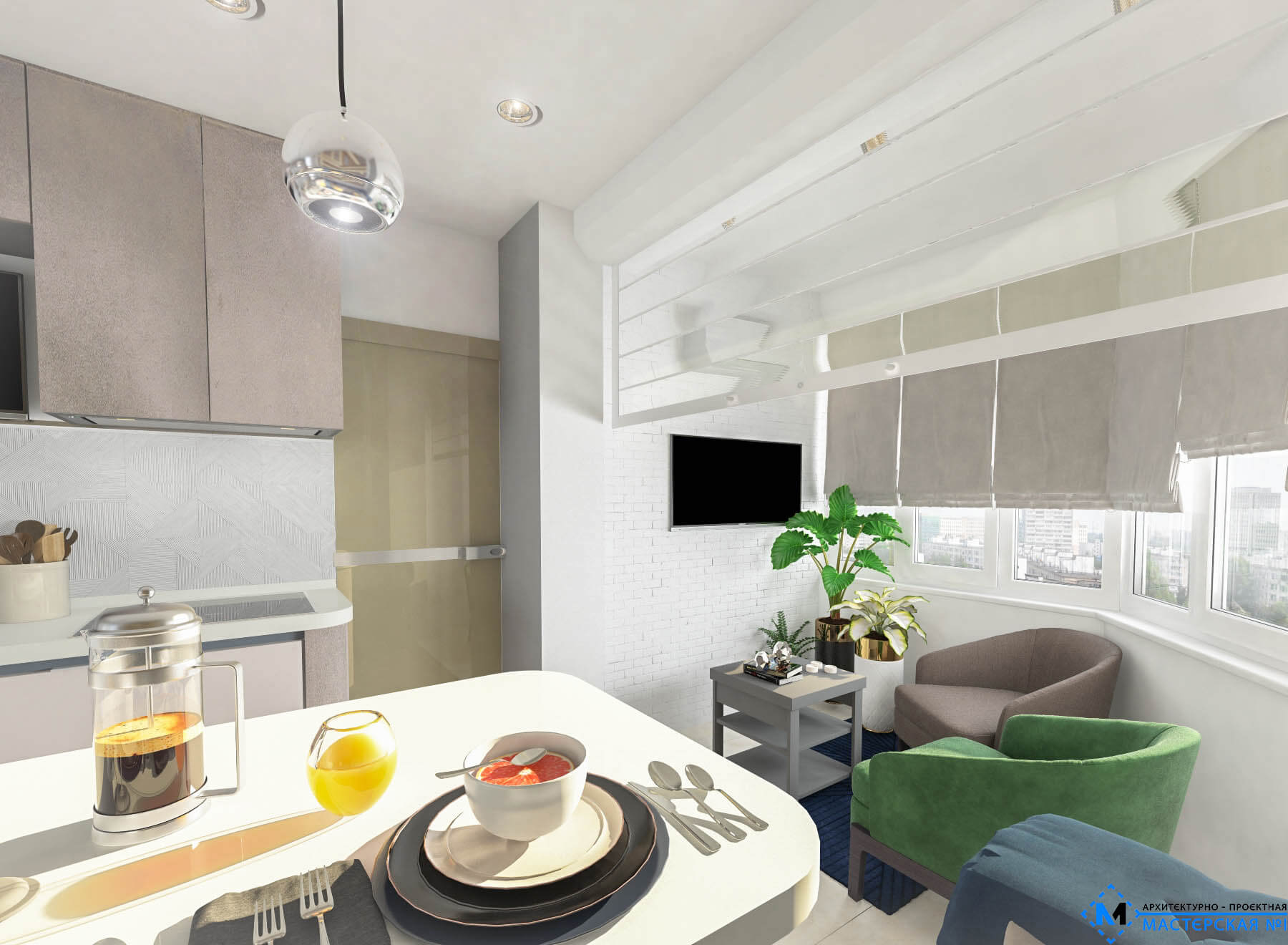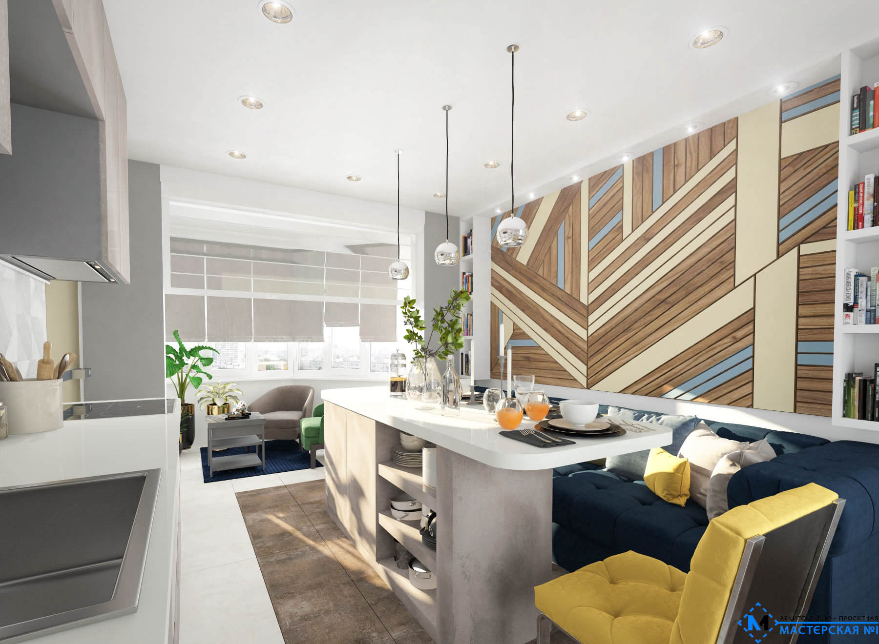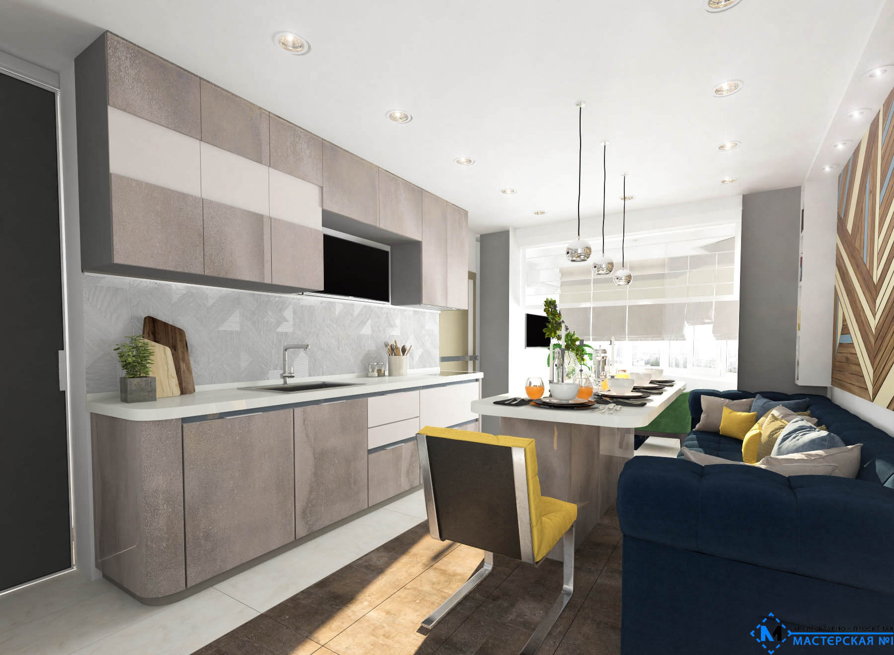 Пример дизайн-проекта с устройством кухни-ниши в квартире жилого комплекса «ЗИЛАРТ». Подробно об объединении кухни с комнатой мы рассказываем в этой статье.