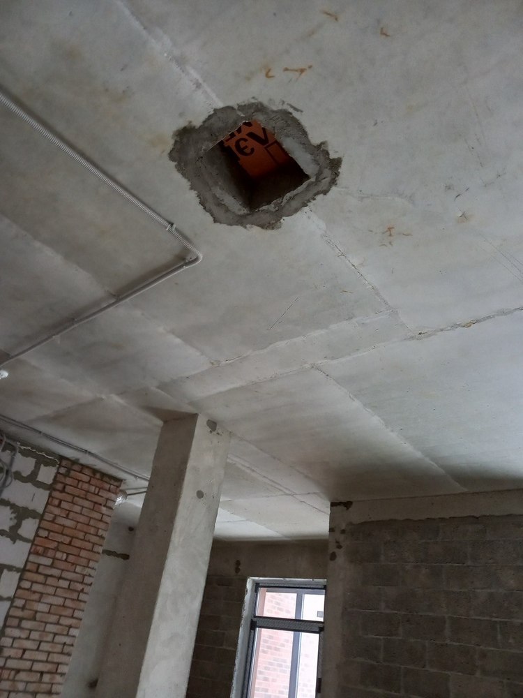 Так выглядит отверстие в перекрытии на последнем этаже для монтажа дымохода, которое предусмотрел застройщик: