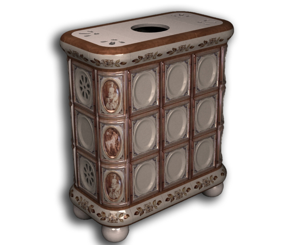 1. Пристенный — стальная топка в изразцовой облицовке: