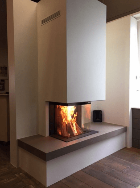 2. Стальной с трёхсторонним остеклением топки (стекло высокой температурной стойкости):