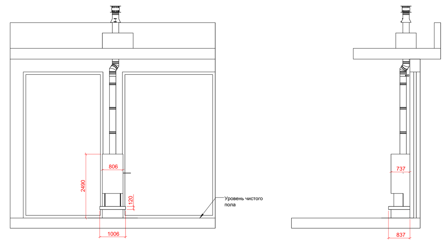 Камины в многоквартирных жилых домах разрешается устанавливать только на последних или предпоследних этажах, если застройщик изначально предусмотрел такую возможность — создал коллективный дымоход или организовал место для монтажа индивидуального дымохода с выводом на кровлю.