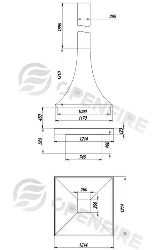 3. Стальной островной с четырёхсторонним огнеупорным остеклением: