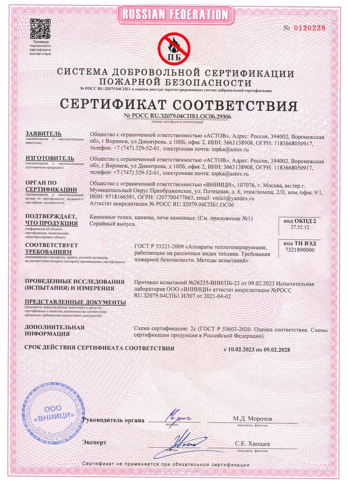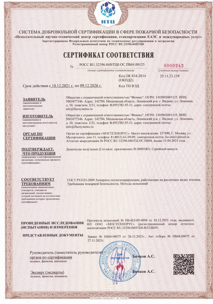 - Документы на дымоход и камин (сертификаты о соответствии требованиям пожарной безопасности, санитарно-эпидемиологическим требованиям, паспорта от производителей с характеристиками и т. д.).