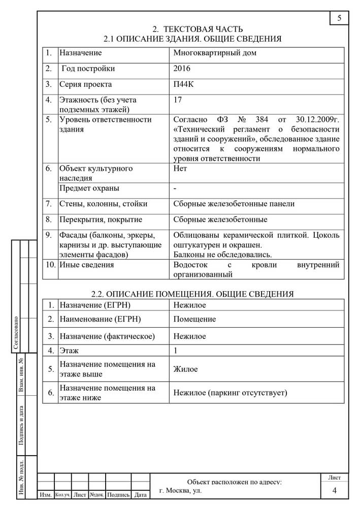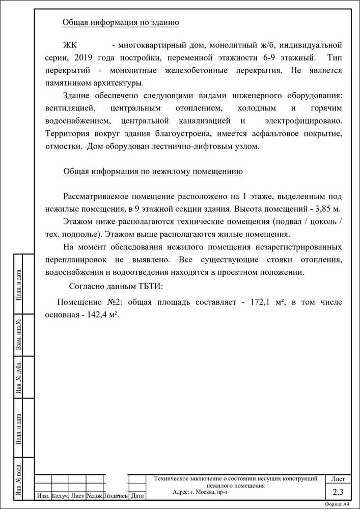 Пример страниц из технического заключения нежилого помещения от ГБУ «Экспертный центр»: