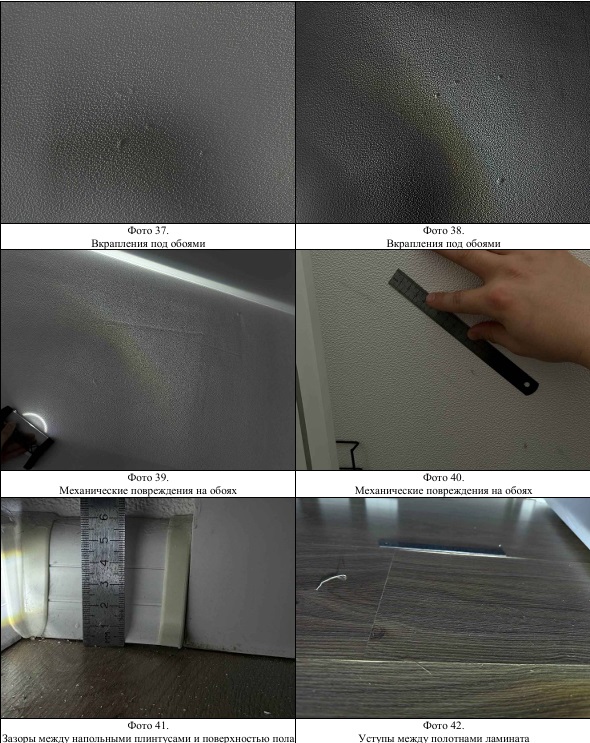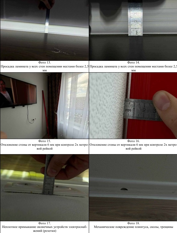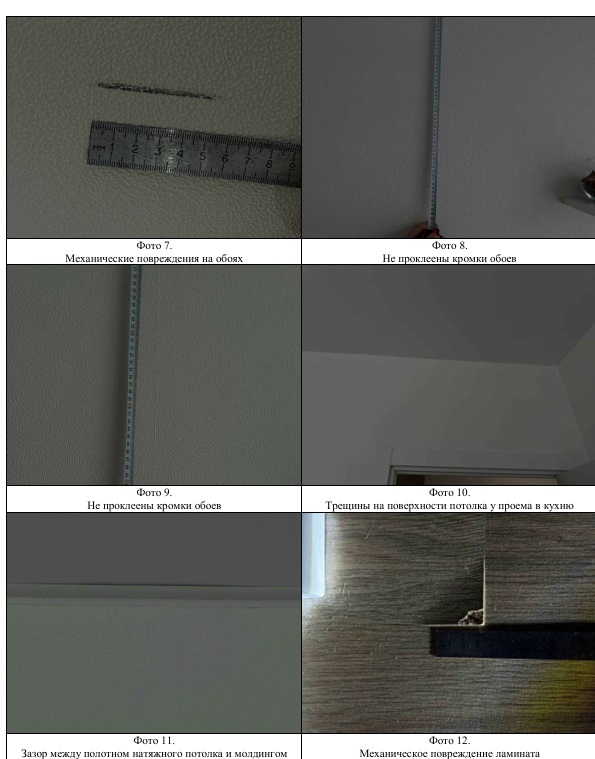 Пример дефектов при ремонте, с которыми собственники квартиры через юристов PEREPLAN обращались в суд с требованием о соразмерном уменьшении стоимости договора в связи с дефектами ремонта и задержки срока сдачи объекта: