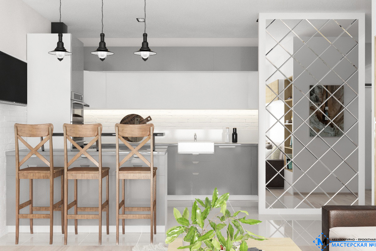 Пример дизайн-проекта с устройством кухни-ниши в квартире жилого комплекса «ЗИЛАРТ». Подробно об объединении кухни с комнатой мы рассказываем в этой статье.