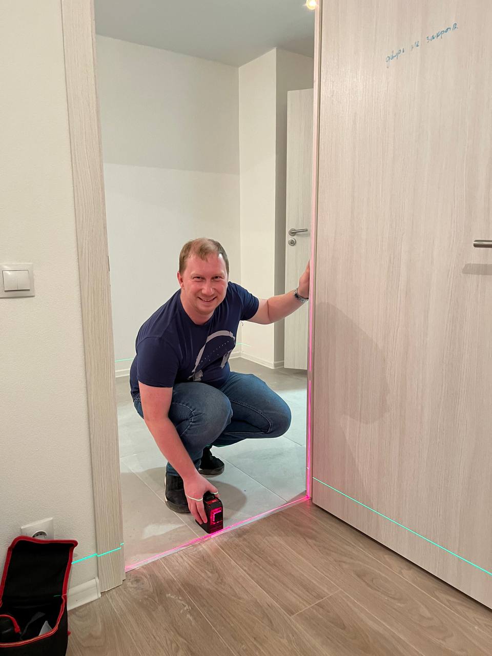 - пол. Проверяем горизонтальность поверхности с учетом покрытия, качество стяжки, зазоры и наличие демпферной ленты в месте примыкания к стенам. Если отделка чистовая, осматриваем финишное покрытие пола, качество монтажа плинтусов;