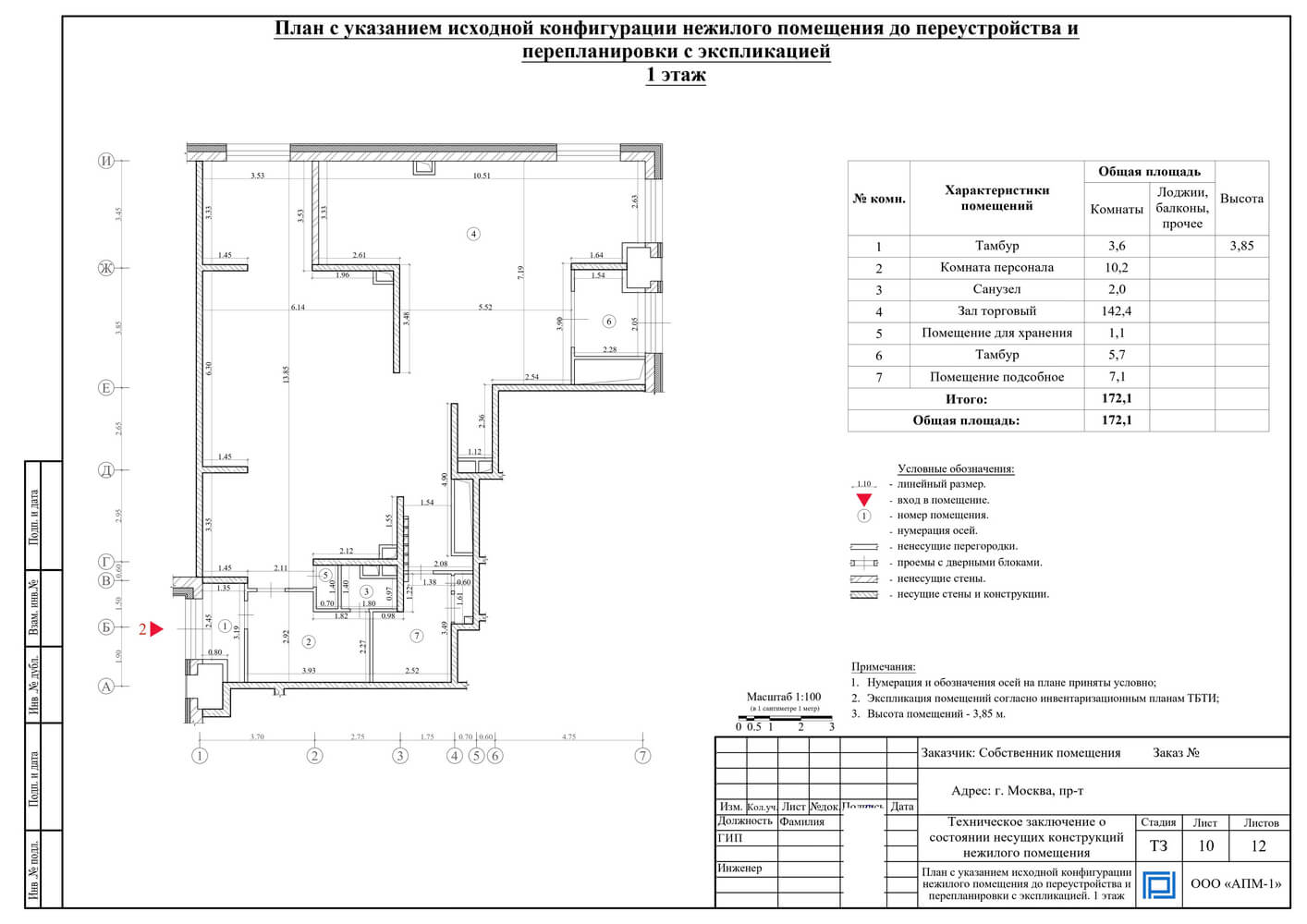 Пример страниц из технического заключения нежилого помещения от компании PEREPLAN: