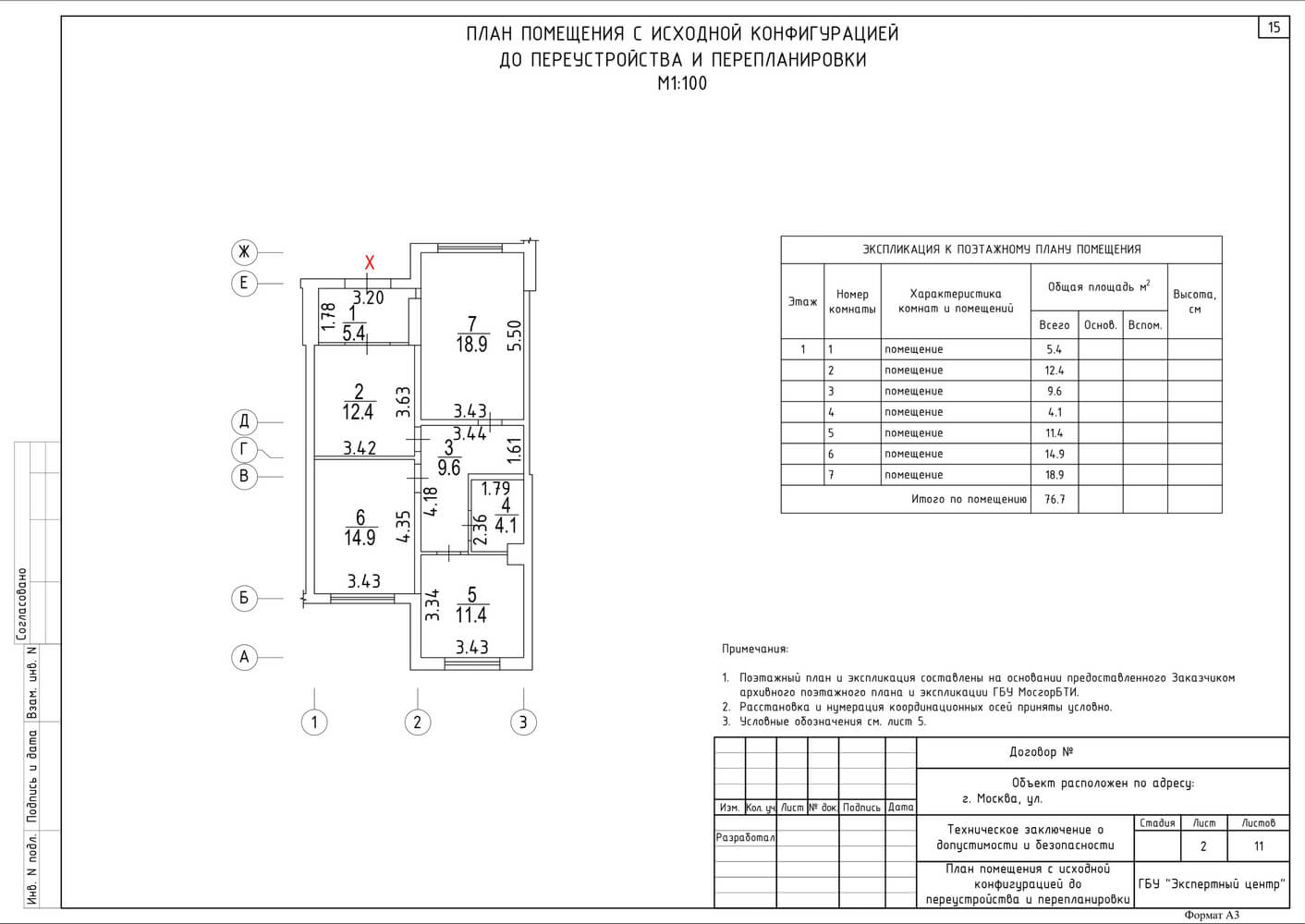 - Техническое заключение о допустимости и безопасности произведённых работ. Оно необходимо, если работы уже выполнены и требуется их узаконить. В случае, когда помещение находится в отдельно стоящем нежилом зданий, обращаться в Мосжилинспекцию не требуется. Работы нужно узаконить на основании проекта перепланировки и технического заключения в БТИ и Росреестре.